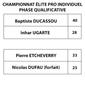 Les dernières parties éliminatoires du Championnat Élite pro individuel se jouaient au trinquet Garat, à Saint-Jean-Pied-de-Port, ce lundi 12...